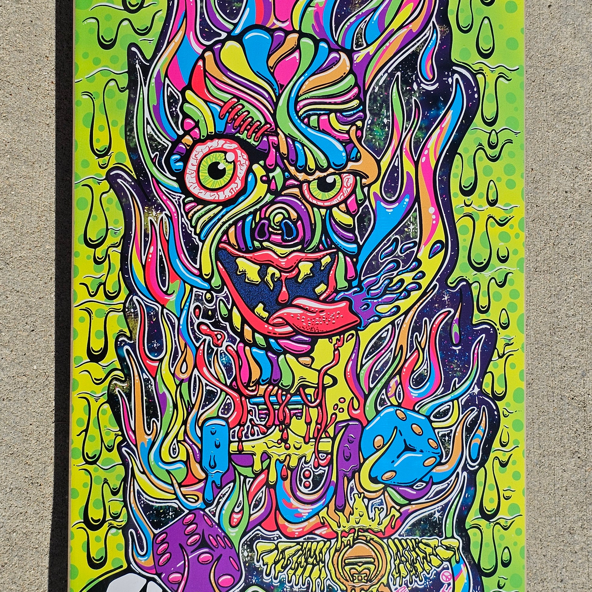 Our "Funky Truckenstein" skateboards, designed by Allen Moehr II, are the perfect choice for skaters of all skill levels. They are made with high-quality materials and constructed in the USA, so you can be sure that they will withstand even the most intense skateboarding sessions. "Funky Truckenstein" is printed on 8.50" boards. The prints are high quality and printed by our friends at Splattergoat. These boards are pressed by South Central Skateboard Manufacturing. We are proud to have a high quality American made product. "Funky Truckenstein" skateboards also make stunning wall art. The unique designs and vibrant colors will brighten up any space! Order your "Funky Truckenstein" skateboard today and be the envy of every bum you know. Haha j/k we like bums too!