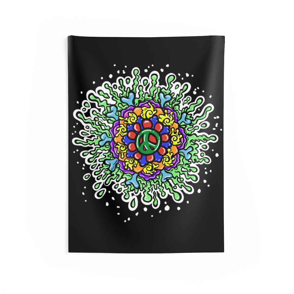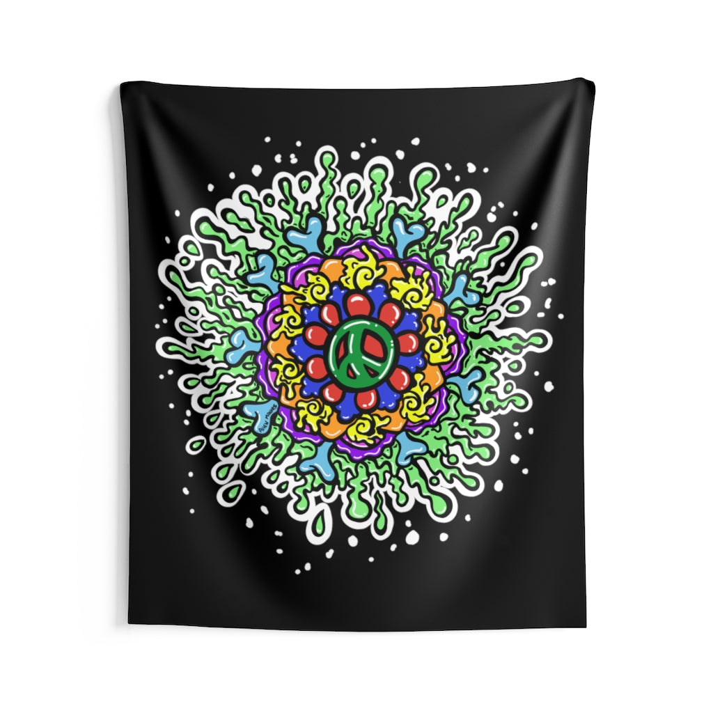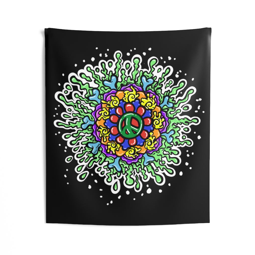 This Tapestry is a design inspired by Allen Moehr's original painting, "Peace is the Goal". This is a print on demand product. It gets made when you order. Please allow about a week or so for the arrival. We appreciate the love and hope you spread the peace.