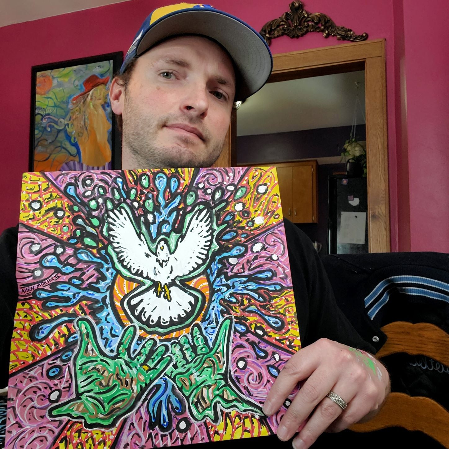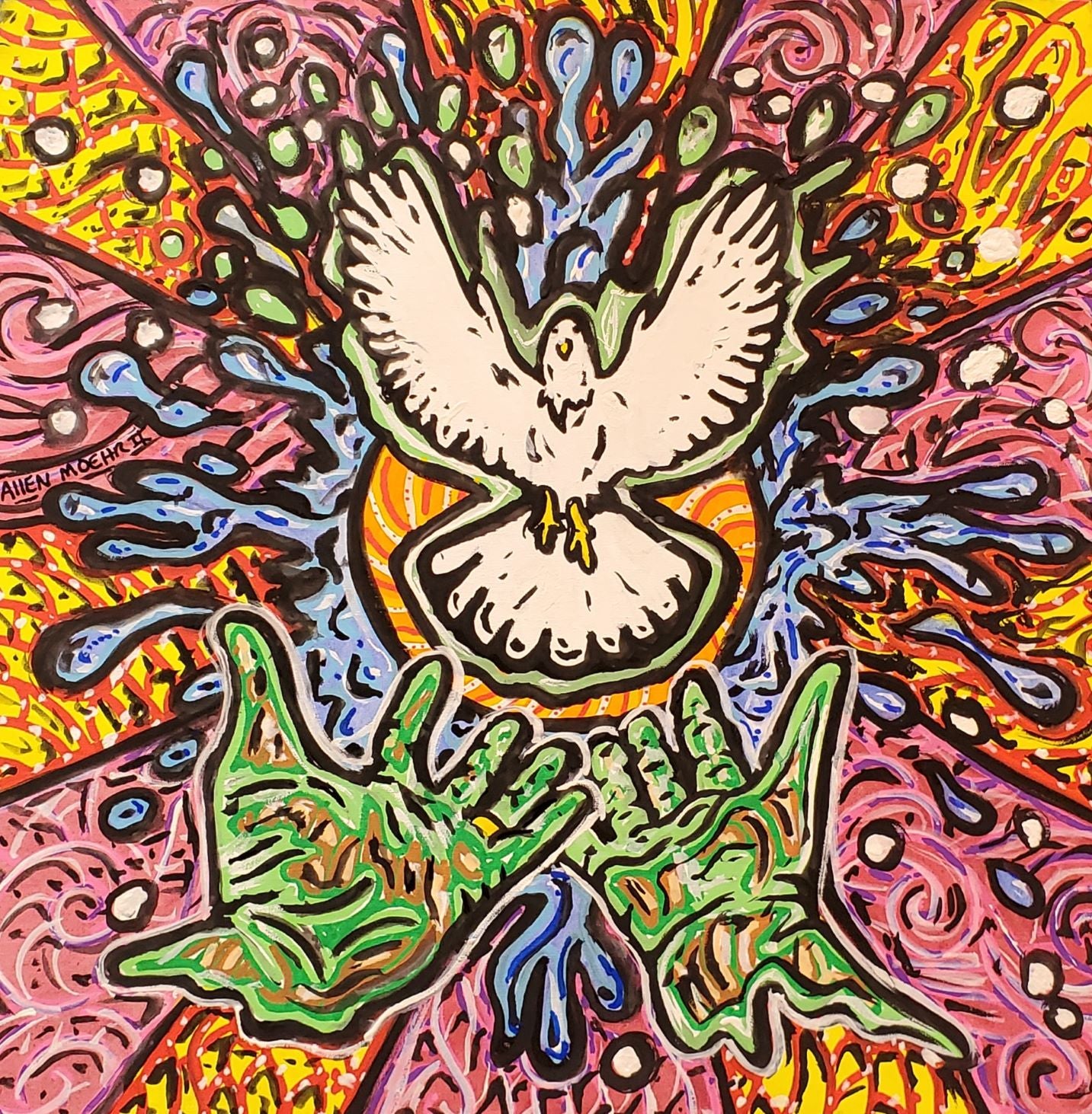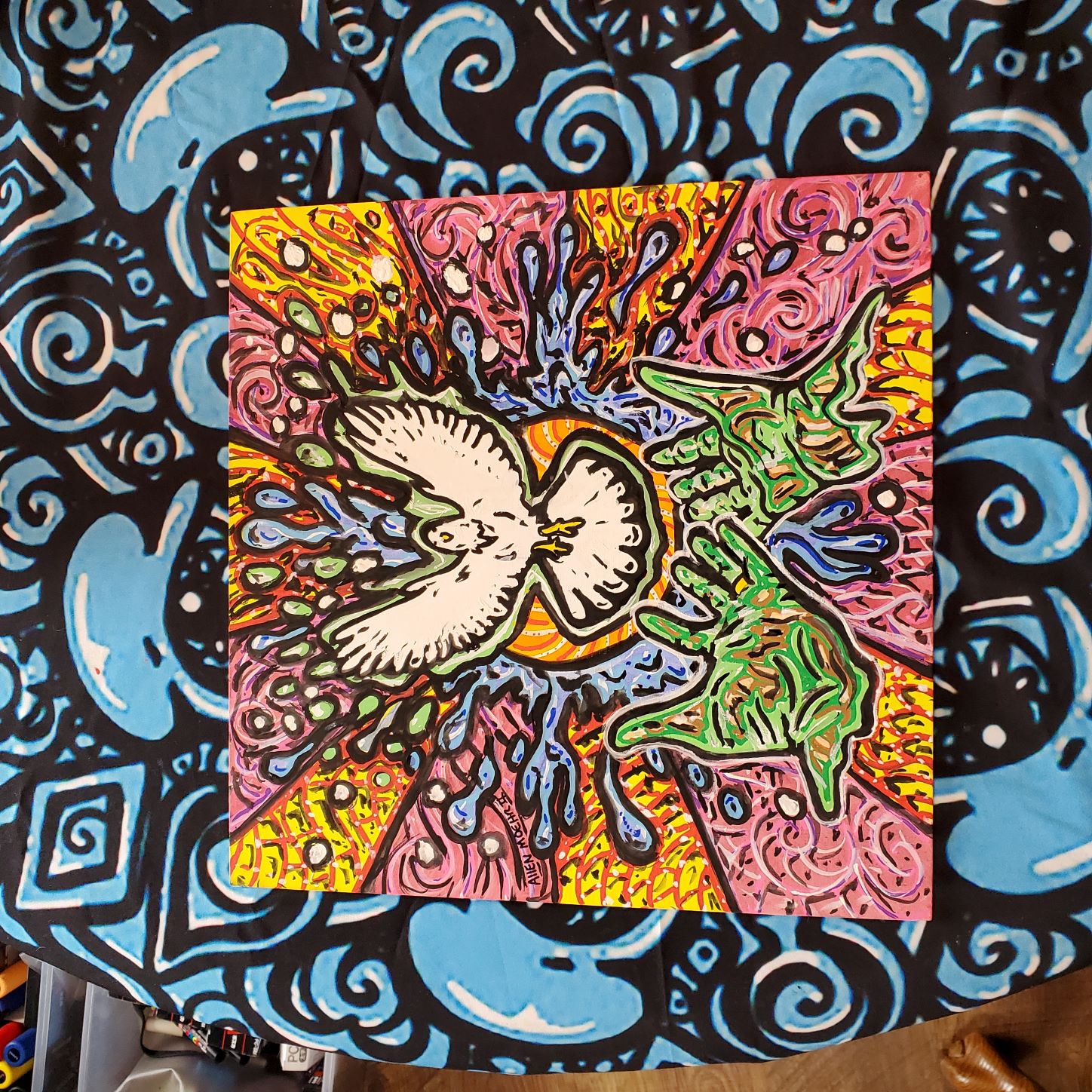 Original Painting 12x12 water color and Posca paint. This is on a canvas board so you may need to frame to hang. I hang them in my house with command strips. I try to spread peace and love as much as I can with my art. I might do more paintings in the future using the same outline/design. Thanks for looking have a blessed day!