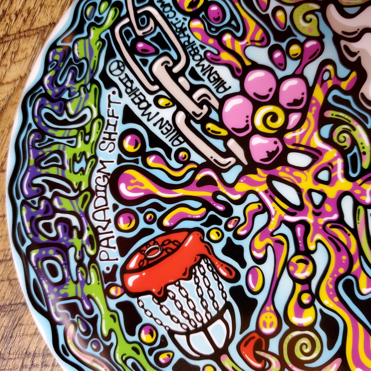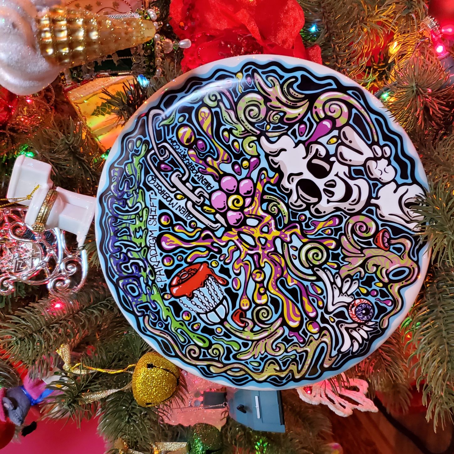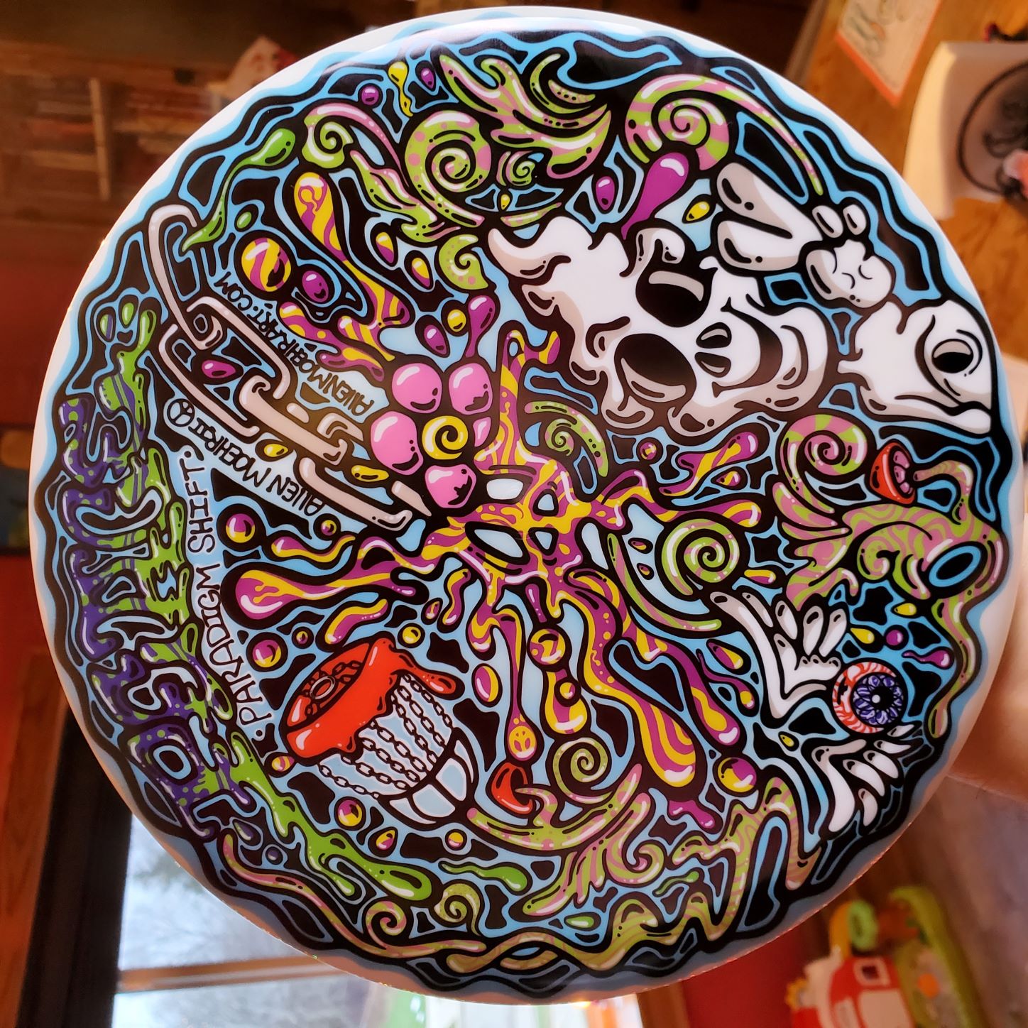 The "Peace Paradigm Shift" is a disc golf putter printed on Latitude 64's Gold Pure. This was printed by Dynamic Discs using their Dye Max Technology. Theses prints are made to play or hang on the wall. The Dye Max department at Dynamic Discs killed it again. Hope you enjoy and may an ace be in your near future.